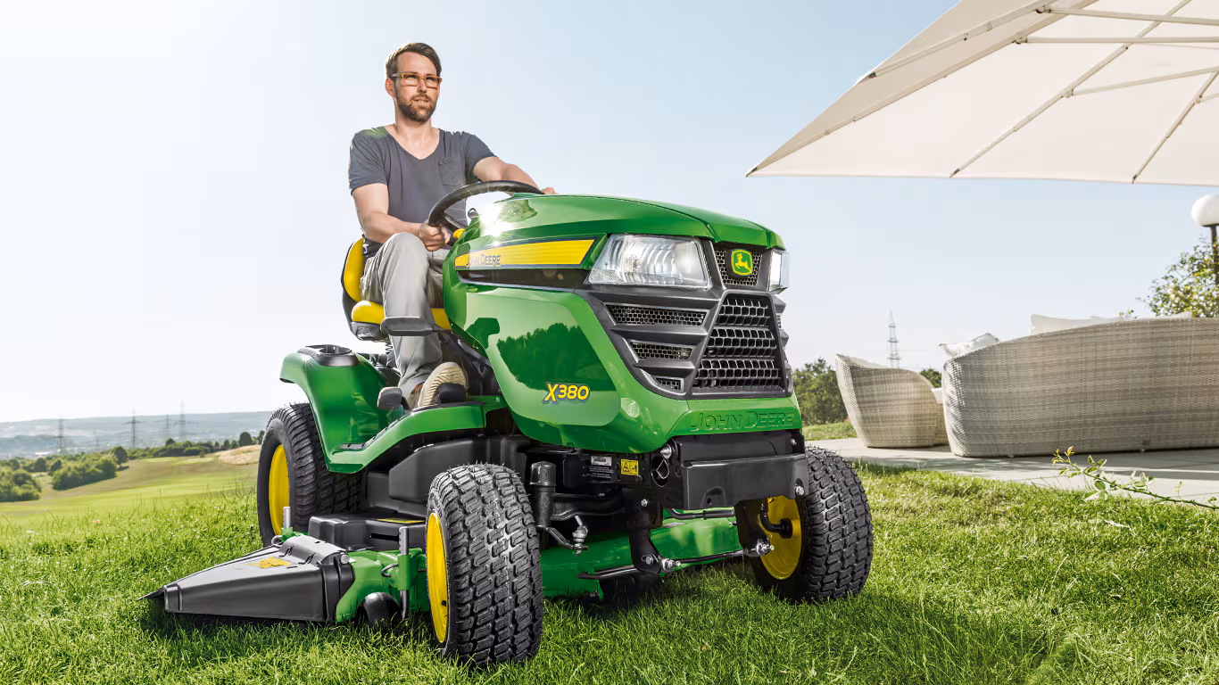 Campioană la cosit, mașina X380 se conduce ca un vis. Un disc comod te ajută să reglezi înălțimea de cosire în pași de 6 mm direct din scaunul tău confortabil. Beneficiază de afișajul clar, de tip autoturism, de comenzile amplasate ergonomic și de pedalele de comandă a transmisiei hidrostatice Twin Touch™ comod de operat. Acestea îți permit să controlezi direcția și viteza de deplasare fără a mai fi nevoie să ridici picioarele de pe platformă.